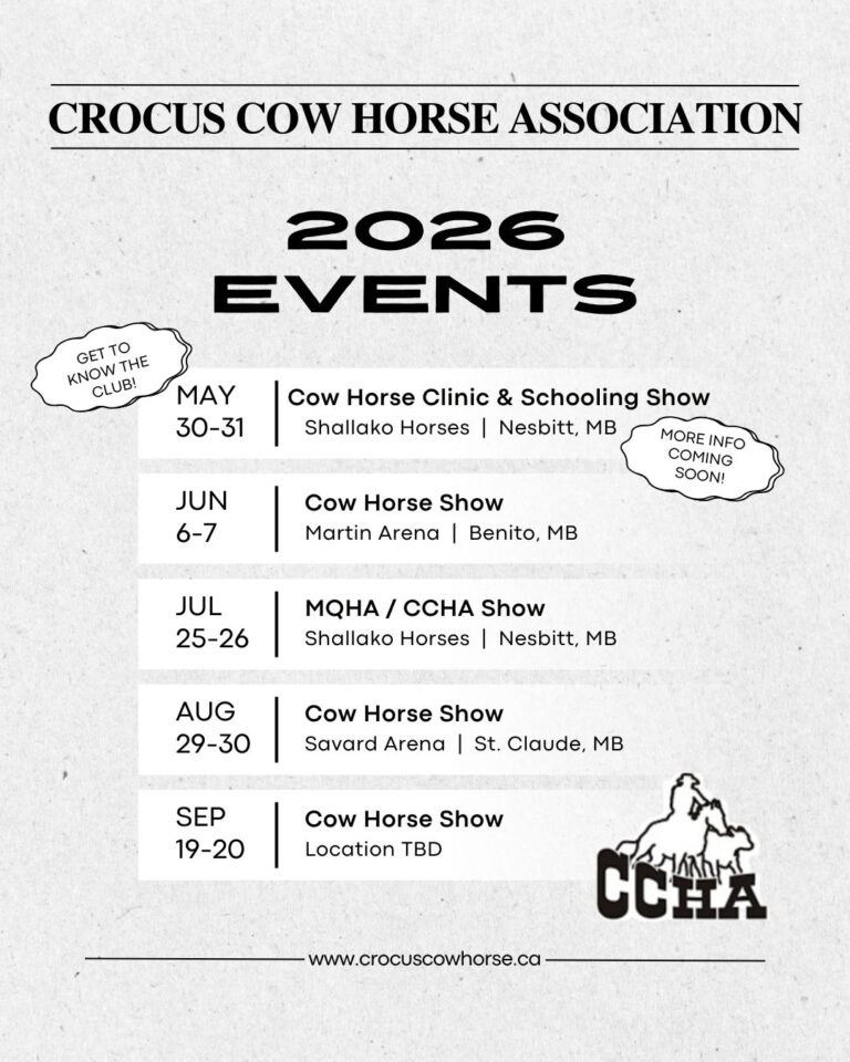 The Crocus Cow Horse Association was formed in 2005 to promote cow horse sports in Manitoba.